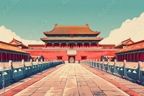 © FloxyArt, Fototapeta premium Imperial Majesty - Ultradetailed Forbidden City Illustration for Creative Projects