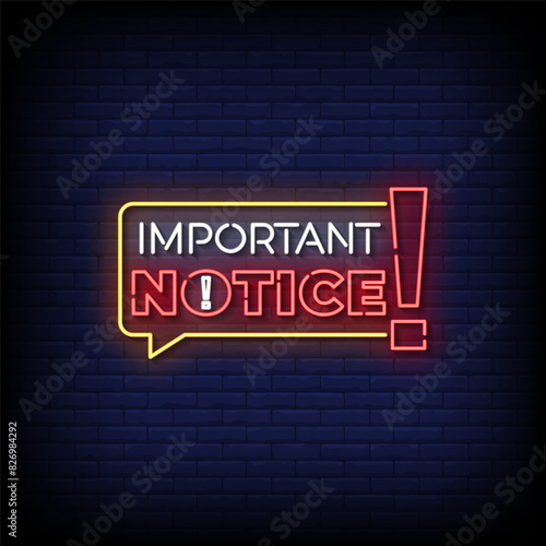 © bohlam, Obraz premium important notice neon Sign on brick wall background vector