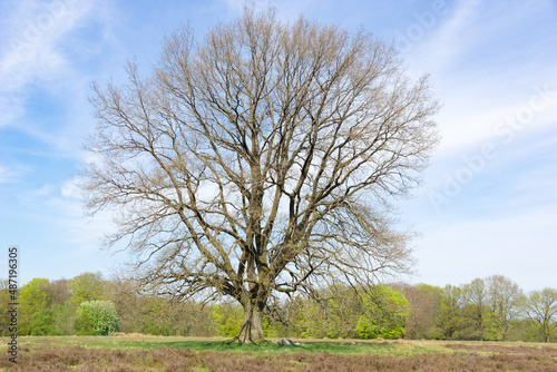 Fototapeta premium Imposante solitäre Eiche in der Heidelandschaft