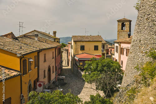 © Marcel, Fototapeta premium Imposing circular tower and curtain wall of the historic Rocca di Montebello in Emilia-Romagna.