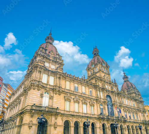 Naklejka premium Imposing City Hall of La Coruña, María Pita Square, La Coruña, Galicia, Spain