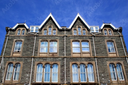 Fototapeta premium Imposing classic stone built building with traditional sash windows and stone...
