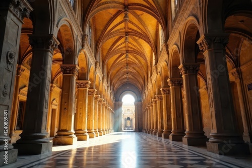 Fototapeta premium Imposing Granada Cathedral interior, soaring arches , Granada, column, calm