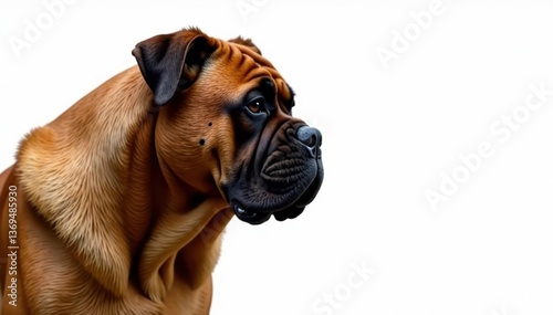 © Manae, Fototapeta premium Imposing mastiff profile, intense gaze, pure white backdrop, profile, studio