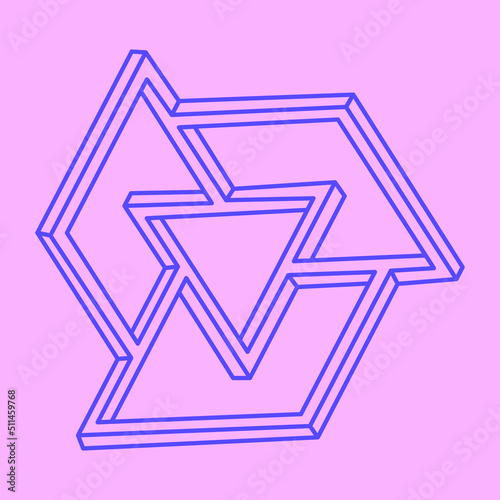 © Hanna, Fototapeta premium Impossible shapes. Sacred geometry figures. Optical illusion. Abstract eternal geometric objects. Impossible endless outline pattern. Optical art. Impossible geometry shape on a pink background.