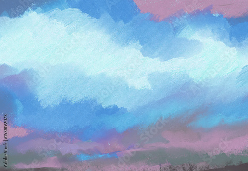 Fototapeta premium Impressionistic Sunset Sunrise Cloudscape Landscape Digital Painting,...