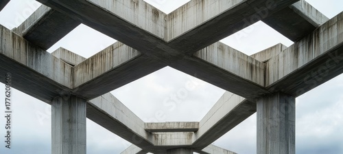 Fototapeta premium Impressive Architectural Marvel Concrete Beams Form Intricate Geometric Patterns in Urban Space.