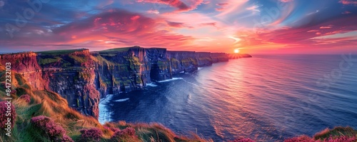 © Riverland Studio, Naklejka premium impressive cliff coast and sunset ocean