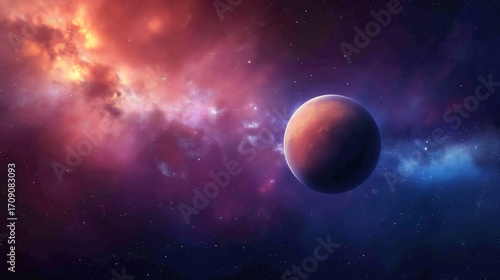 © MstRokea, Obraz premium Impressive Digital Generated Space Scene with Nebulae Background