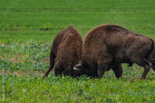 © Magdalena, Fototapeta premium impressive giant wild bison fighting with each other in the autumn scenery