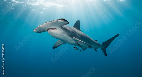 © Lexi, Fototapeta premium Impressive hammerhead shark swimming gracefully in crystal-clear ocean waters