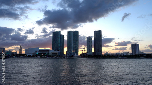 © 4kclips, Naklejka premium Impressive Miami Downtown skyline in the evening