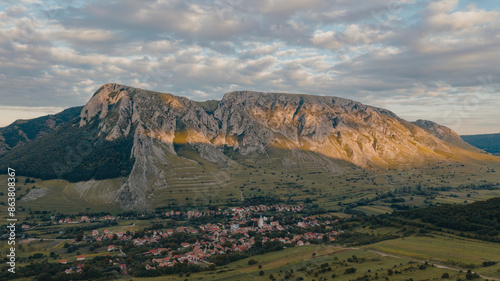 © Doralin, Fototapeta premium Impressive panorama view on Rimetea Village. Outstanding view of Piatra Secuiului mountains