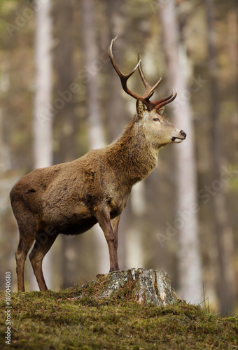 © giedriius, Fototapeta premium Impressive Red deer stag standing high in the woods