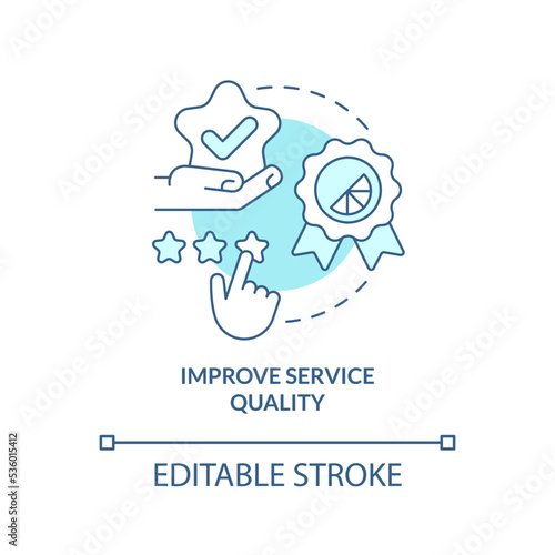 © IMG visuals icons, Naklejka premium Improve service quality turquoise concept icon. Ambient scenting marketing bonus abstract idea thin line illustration. Isolated outline drawing. Editable stroke. Arial, Myriad Pro-Bold fonts used