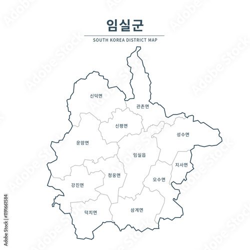 Fototapeta premium Imsil map. Map of South Korea with Major Cities, Clean Line Design on White Background.