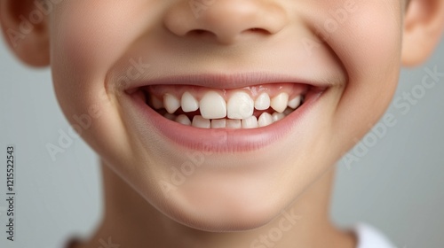© Sergo, Obraz premium In a professional studio, a 10-year-old boy beams joyfully, showcasing his vibrant laughter and missing tooth. His bright white smile lights up the atmosphere, creating warmth