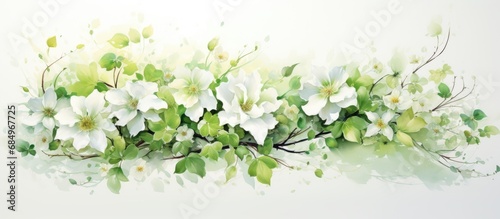 Fototapeta premium In a stunning display of creativity, an abstract floral design bursts forth, embodying the essence of summer and spring, with leaves of vibrant green and delicate white flowers. Isolated against a