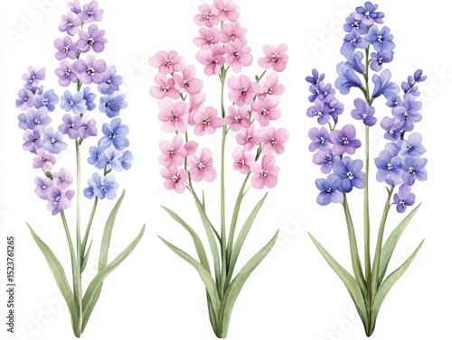 © Julia, Naklejka premium In a watercolor garden, a kaleidoscope of blooms, such as lavenders, lupines, and snapdragons, move in harmony to create a floral symphony