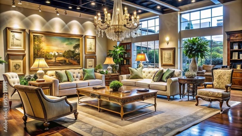 Naklejka premium In Austin, a high-end furniture consignment showroom is designed to evoke elegance and sophistication, providing a serene atmosphere and exceptional design for the most refined tastes.