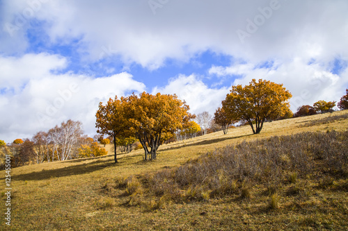 © zhengzaishanchu, Fototapeta premium In autumn, trees on the hillside