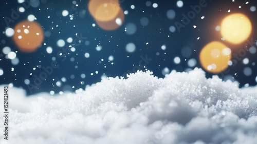© Iaroslav, Fototapeta premium in christmas winter snowflake decoration standing on snow with falling blurred golden lights White background