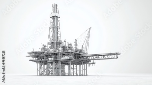 © Bundi, Obraz premium In 3D wireframe style, it illustrates an offshore oil rig drilling platform along with visible and invisible lines.