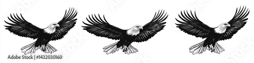 Fototapeta premium In flight, four eagles exhibit detailed wing designs and varied poses on a...