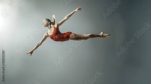 Naklejka premium In-flight gymnast: A female acrobatics performer leaps mid-air in a graceful...