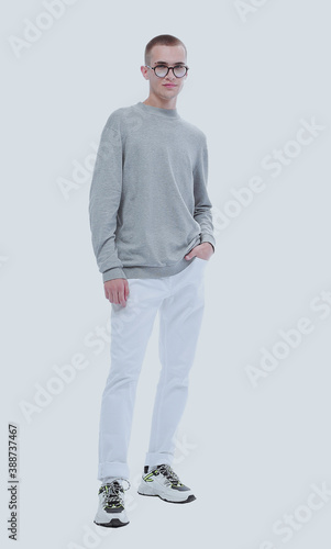 Fototapeta premium in full growth. casual stylish guy in glasses.