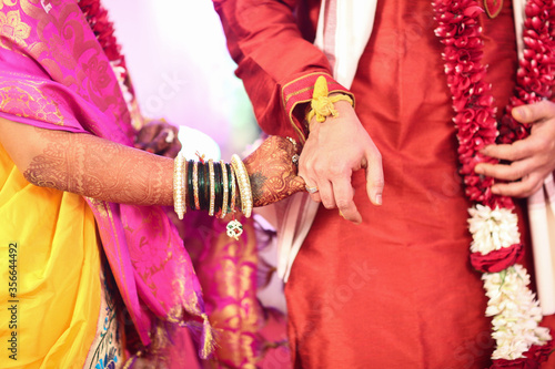 Fototapeta premium In Indian traditional wedding couple holding hand