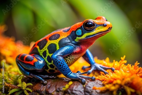 Obraz premium In its natural habitat, a vibrant poison arrow frog showcases a dazzling...