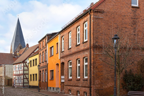 Obraz premium In Röbel you will find many old, restored half-timbered houses.
