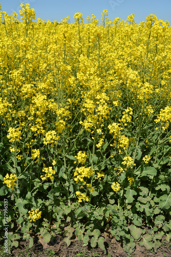 Fototapeta premium In spring, winter rape blooms in the field