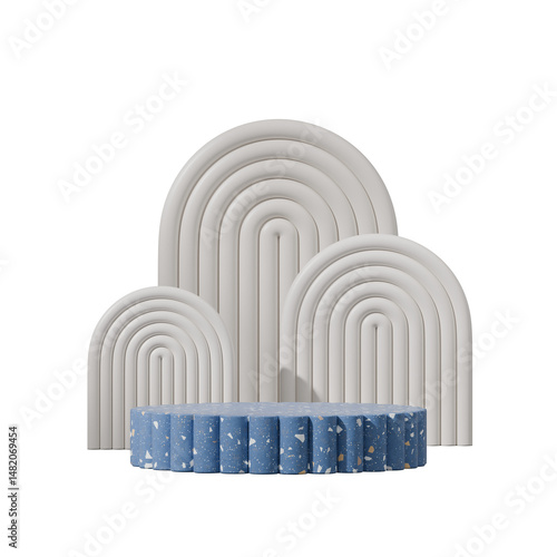 © Faustudio, Obraz premium in square white arch, 3d render image transparent background of blue terrazzo textured podium