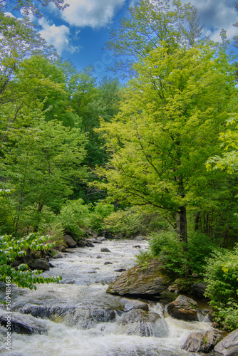 Naklejka premium In summer, beautiful river in the Canadian forest in the province of Quebec