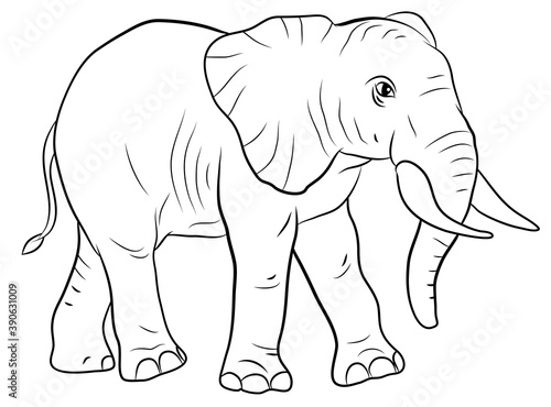 Fototapeta premium In the animal world. Image of an elephant. Black and white drawing, coloring.