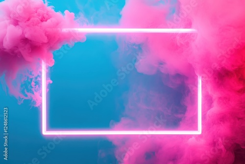 © Alexei, Naklejka premium In the center of a cloudy sky, there exists a vibrant neon frame