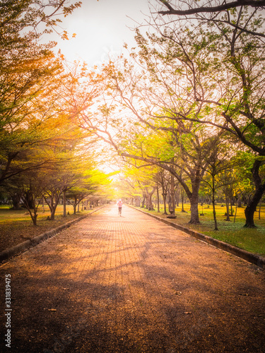 © touch_of_eyes, Fototapeta premium In the evening, a beautiful path in the park.