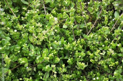 © orestligetka, Obraz premium In the field in the soil grows Stellaria media