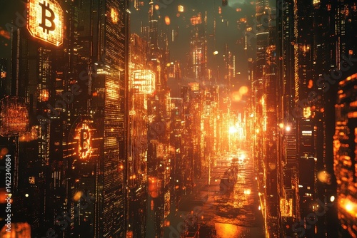 © Atonu, Fototapeta premium In the future, people can purchase everything using a universal digital currency, but when the value of that currency plummets, citizens must fight to preserve their livelihoods.