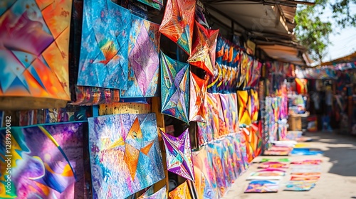 Fototapeta premium In the kite market the amount of colorful kites of different sizes is set...