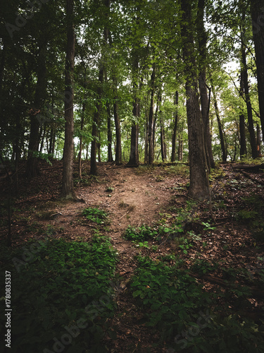 © Christopher, Fototapeta premium in the middle of the woods with trees, grass, and soil