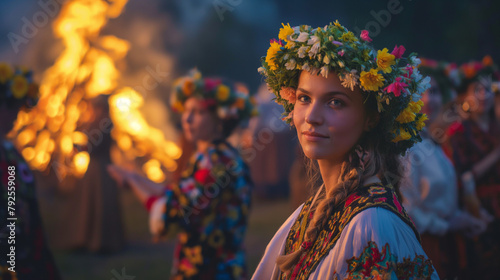Fototapeta premium In the midst of the sacred festival celebration of Ivana Kupala Saint John, a...