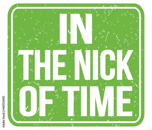 Fototapeta premium IN THE NICK OF TIME, text written on green stamp sign