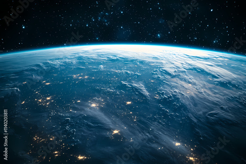 © Akharadat, Obraz premium In the sky, an airplane is flying over the earth.