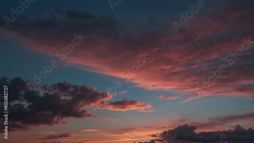 Fototapeta premium In the soft glow of dusk, a sky painted with hues of pink and blue whispers...