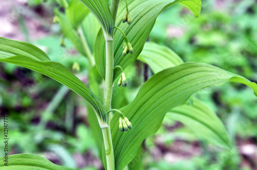 © orestligetka, Obraz premium In the spring forest grows multifloral plant Polygonatum multiflorum