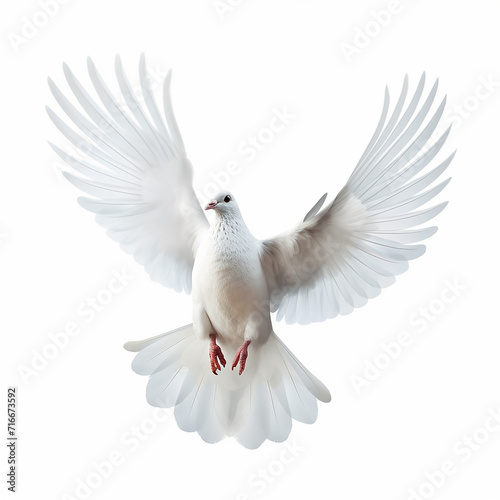 © Nayan, Obraz premium In the top view, a single white color pigeon flying isolated on a white background