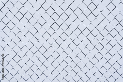 © Rolands, Fototapeta premium in the winter snow a black metal fence and some plants form an interesting pattern